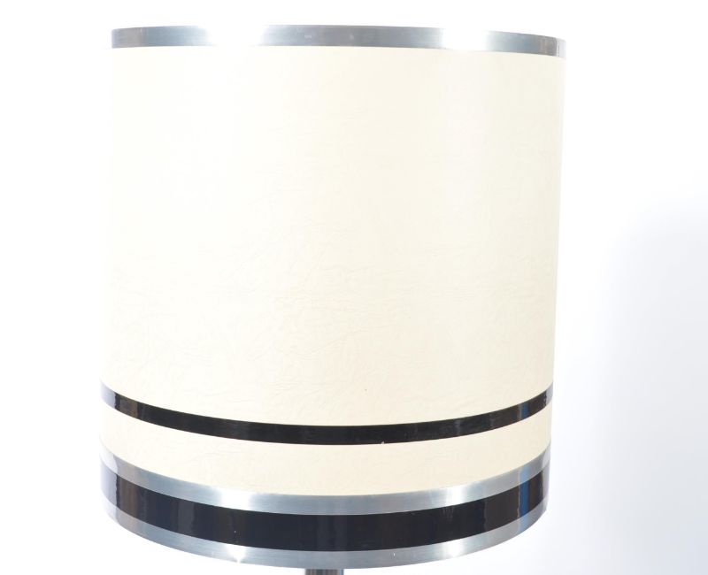 A retro style 20th century chrome and dice style standard lamp. Raised on terraced base with chrome upright complete with the shade. Measures 161cm high.