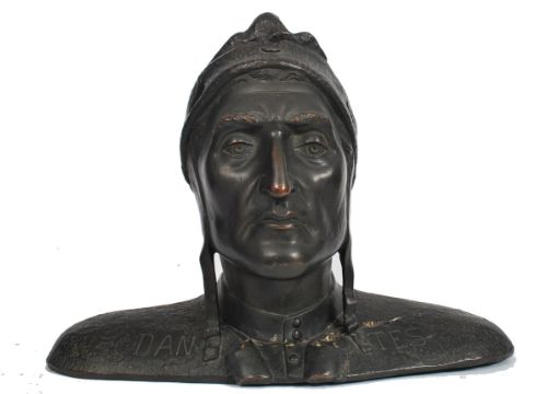 A 20th century large cast bronze bust of Dantes with notation to the shoulders