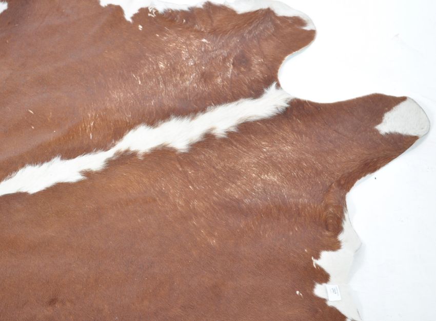 A retro 20th century large pony skin hide rug having brown and white fur ( see illustrations ) Measures 197cm high x 190cm wide.