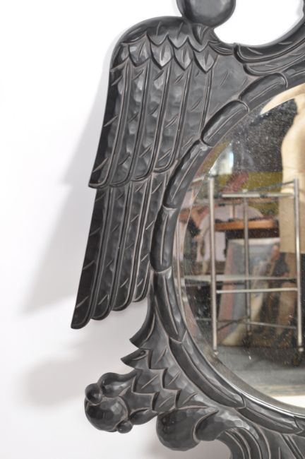 A large 20th century ebonised cast resin wall mirror in the form of the Russian Federation coat of arms. Bevelled edge mirror glass to centre