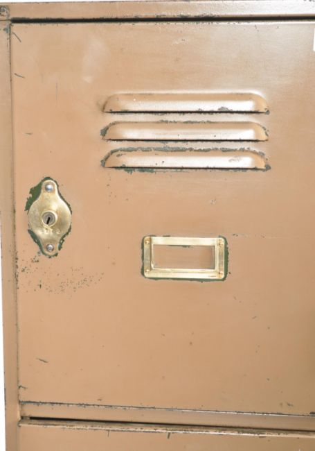 An early 20th century retro vintage industrial four compartment steel filing locker cabinet by Roneo Ltd. The upright body with brass handles and label to interior for Roneo LTD. Measures 165cms x 36cms by 33cms.