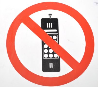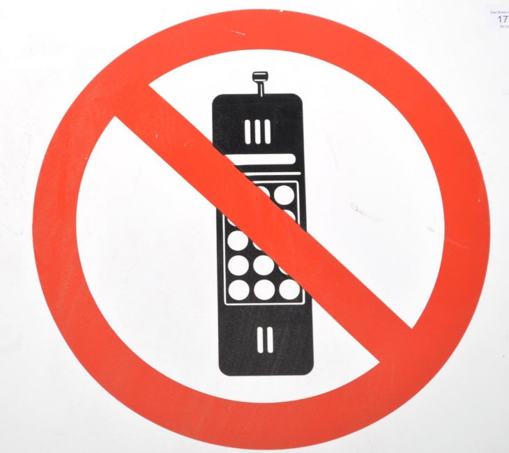 Ex RAF Lyneham - Metal advertising warning sign  ' Explosive  Building DO NOT USE MOBILE PHONES WITHIN 25M ' . Measures 60cms high x 45cms wide.