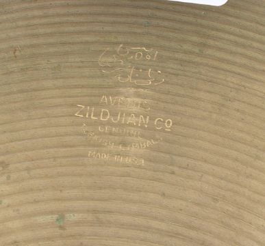 A Vintage 20th century Zildjian Avedis 17" ride cymbal, inscribed Avedis Zildjian Co., genuine Turkish style cymbals, made in USA