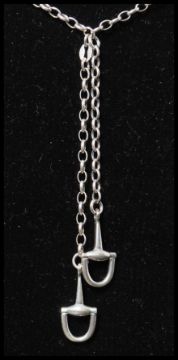 A 925 silver necklace in the style of a watch chain having stirrup links and lobster claw clasp. Measures approx 20inches.