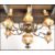 A 20th century Continental five branch brass / ormolu and ceramic light / chandelier light fixture, each branch having a decorated bulbous decorated ceramic aperture with a gilt ormolu swag arm.