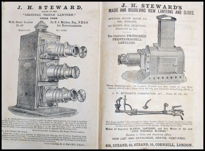 The Magic Lantern Manual; Rare book. by J. Chadwick. Published Frederick Warne, London. 1878 First Edition. Pictorial hardcover. 100 Illustrations within. Measures 18 cm high and 13 cm wide.
