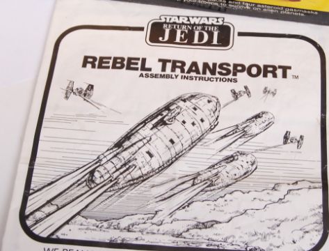 An original vintage Palitoy made Star Wars ' Rebel Transport Vehicle .' 100% complete (including the back packs, and 4x gas masks), with original instructions. Inner card present. Original box. Condition of the Vehicle is largely very good, being still white with little decal wear. Outer box fair to good.