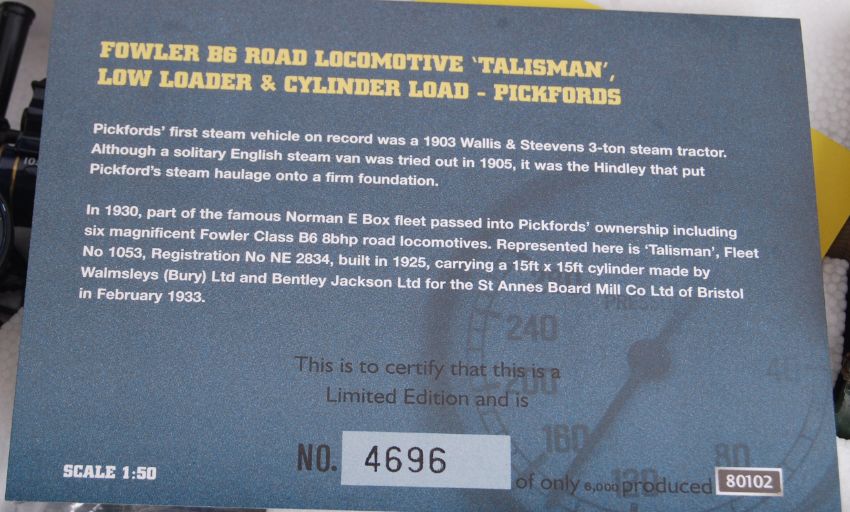 A Corgi Vintage Glory Of Steam diecast model set No. 80102 Fowler B6 Pickfords steam tractor and trailer. Appears mint, unused, with certificate, within the original box.