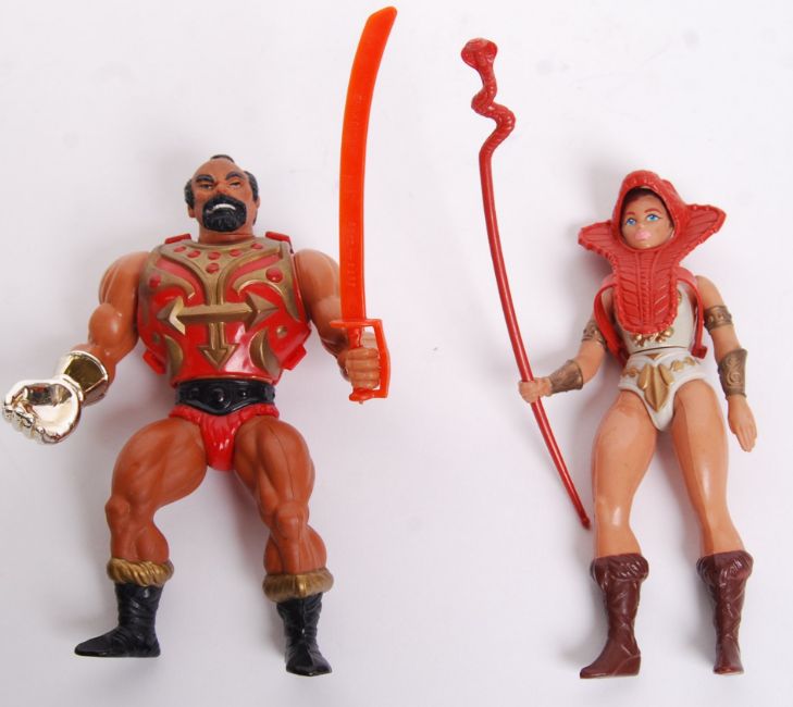 A collection of vintage 1980's Mattel made Masters Of The Universe MOTU action figures. All generally appear mint to mint+ and some are complete with weapons / accessories. Comprising of; Zodac (complete), Fisto (complete), Ram Man (complete but a 7/10 figure), Mekaneck, Prince Adam, Beastman, Teela (2/3 accessories present), Stratos, and Jitsu (complete). Along with vehicles; Road Ripper and Wind Raider (missing some parts). Also included is a quantity of original MOTU action figure weapons / accessories. A good collection.