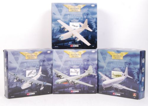 A collection of 4x Corgi Aviation Archive 1:144 scale diecast model aeroplanes. All from the ' Military ' series. Comprising of; 48405 Hercules, 48805 Short Sunderland MkIII, 48903 B-29 Superfortress, and 48103 '1st Issue' Boeing C-97G. All as new, unused, within the original boxes.  Note: From a large private collection of Corgi Aviation Archive (and other diecast model planes). All are unused, 100% complete (including certificates) and never removed from the boxes. Purchased by a collector upon release, many are Limited Edition or ' 1st Issue ' sets.