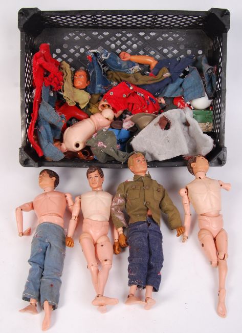 A collection of original vintage Palitoy made Action Man figures / dolls. Some complete figures, others parts. Along with a small quantity of original uniforms, accessories and weapons etc.