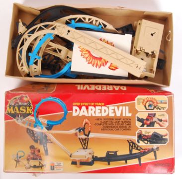 Two original vintage Ideal made Mask track racing boxed sets to include; Daredevil set & 2 Lane Road Racing Set. Appear to be missing cars. Contents unchecked by us. Both within their original boxes.