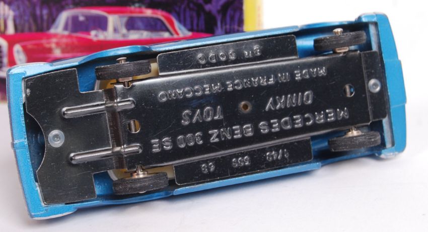 A rare vintage French Dinky Toys diecast model No. 533 ' Coupe Mercedes Benz 300 SE '. Model appears in superb mint+ original condition. Blue, with cream interior. Base marked 'Made In France .' Within the original and correct French issue box. Rare.
