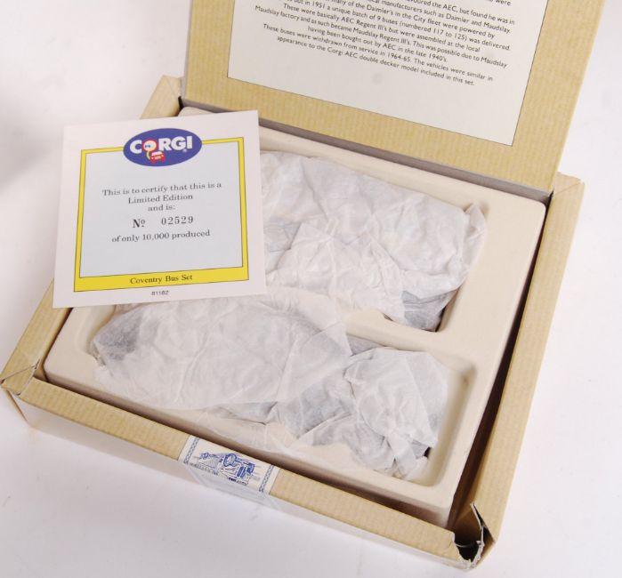 A collection of 5x Corgi Classics made diecast model buses - all double sets. All appear mint, within the original boxes and with certificates. Comprising of; 97061, 97078, 97075, 97077 and 97076. All mint.