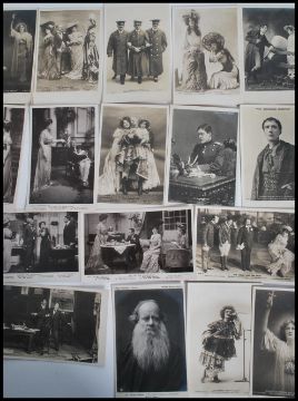 A collection of x44 Edwardian ' Rotary Photographic Series ' postcards of scenes from plays. Each annotated with the title of the play and the actors who feature in the postcard. To include ' The Light That Failed ,' ' A Chinese Honeymoon ,' ' Old Heidelberg ', 'The Toreador ,' ' Three Little Maids ' and many others. A wonderful glimpse of bygone theatre.