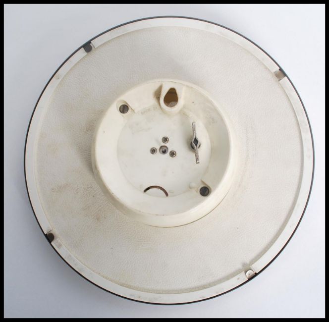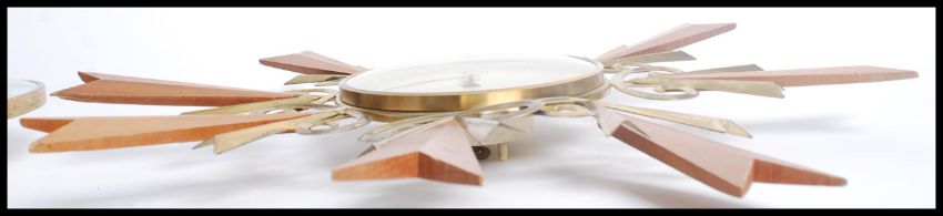 Two vintage mid 20th century retro wall clocks one being a Metamec clock having a white and gilt face with faceted hands and the other being a Paico sunburst starburst clock having scrolled decoration with scrolled hands. Measures 51cms diameter.