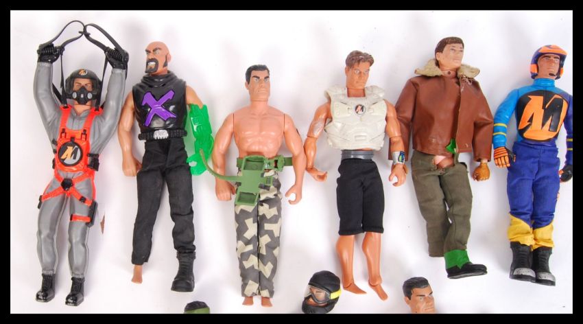 A collection of 9x Hasbro Action Man figures in various clothing/ outfits to include; Ice Skater, Diver, Motorcyclist, Jungle Commando & others. All unboxed.