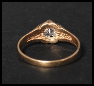 A hallmarked 9ct gold and white stone ring. Hallmarked for London. Weight 3.3g. Size T.