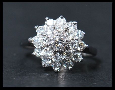 A contemporary  ladies 20th century 18ct white gold diamond cluster ring, together with valuation certificate from Nicholas Wilder.