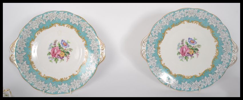 A collection of six Royal Albert Bone China cups and saucers for the months of the year together with a pair of Royal Albert cake / sandwich plates. Measures 25 cm wide.
