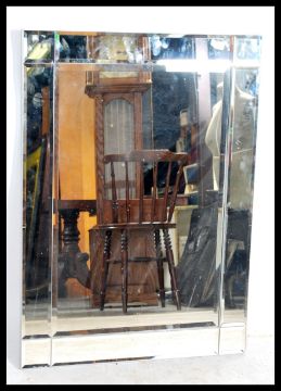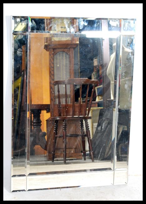 A 20th century contemporary wall mirror in the Venetian style originally purchased from  John Lewis. Measures 92cm x 66cm.