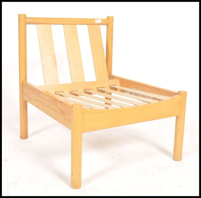 A retro 20th century low Ercol staff industrial school chair. Rasied on turned supports. Measures 69cm x 60cm x 68cm.