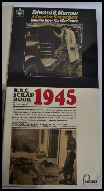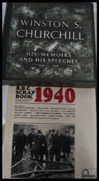 A collection of talking vinyl long play records to include sir Winston Churchill and His Memoirs and Speeches, BBC For Johnny 25th Anniversary Album, BBC Scrapbook for years 1940 & 1945 etc. Measures 31.5 cm high and 31.5 cm wide.