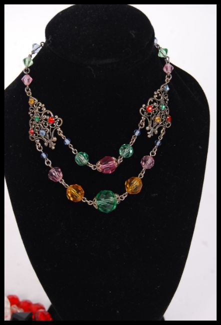A large collection of vintage  Art Deco, Neiger style, Venetian and other crystal and glass bead necklaces.