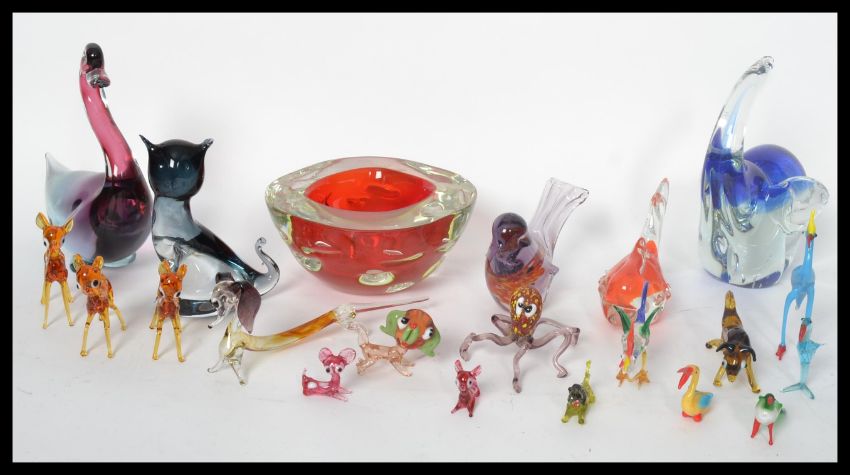 A collection of 20th century studio glass animals to include mostly Murano. Highest measures 16.5 cm.