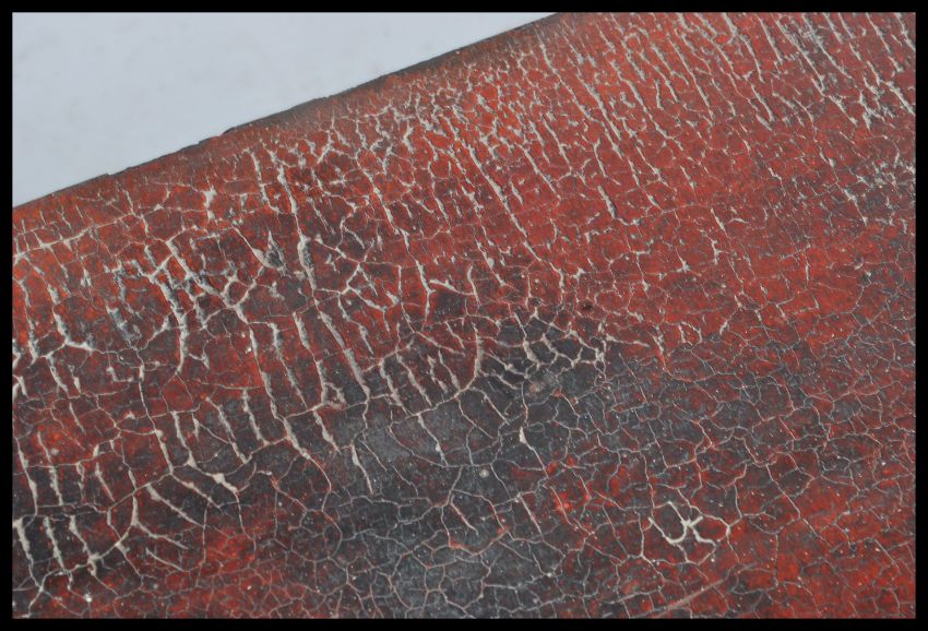 A believed 19th century large Antique Chinese scroll table from the Shanxi province made of hardwood having a hand waxed and red lacquered finish. Measures: 38cm high x 167cm wide x 50cm deep.