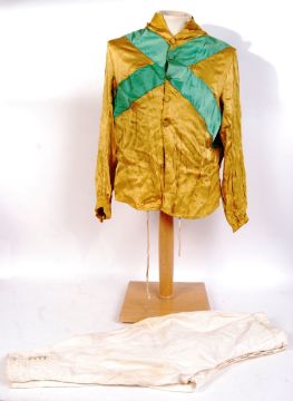 A collection of vintage 20th century horse racing equestrian items to include Jockey Silks , saddles one by Moss Bros and various other items Please see images.