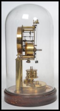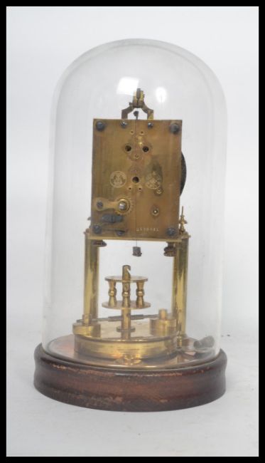 Gustav Becker - A perpetual brass anniversary clock having a glass dome and a wooden socle plinth base. Pressed stamps to the reverse for Medaille D'or and Gustav Becker GB freiburg in schl with serial NO 2159951. Measures 28 cm high.