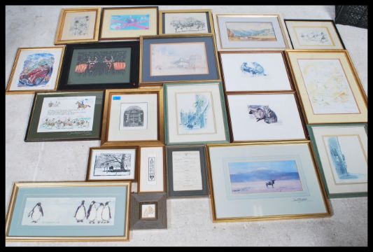 A collection of framed and glazed pictures dating from the 19th century to include Etchings, prints, watercolours etc please refer to images.