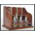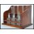 A stunning mid 20th century mahogany chemists fully appointed test tube stand with an arrangement of assorted test tubes and pots.