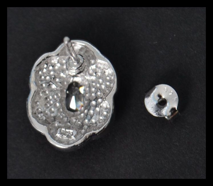 A pair of silver and enamel set stud earrings in the form of flowers having central white stones. Complete in presentation box.