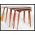 A 1970's atomic faux teak wood astral coffee table of lozenge form with inset glass top together with a retro nest of tables, each of graduating sizes. Measures 42cm x 107cm x 54cm.