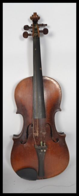 A 20th century vingage cased violin labelled Antonius Stradivorius Cremonensis Faciebat Anno 1734 complete with the case and 2 bows ( af )