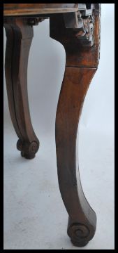 A large antique 20th century Chinese circular dining table from the Zhejiang province. The table made from two semi circles that fit together and having lotus flower scroll decorations  having a dark lacquer finish. Measures: 88cm high x 127cm diameter.