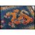 An early 20th century Tibetan double dragon rug. The blue ground with 2 dragons surrounded by gemoetric borders, tassled ends. Measures 94cms x 186cms