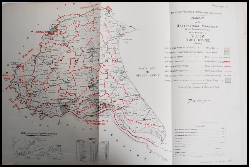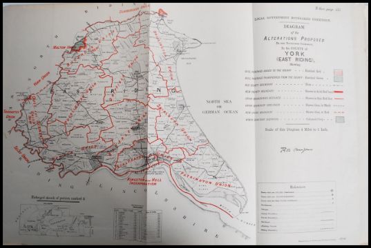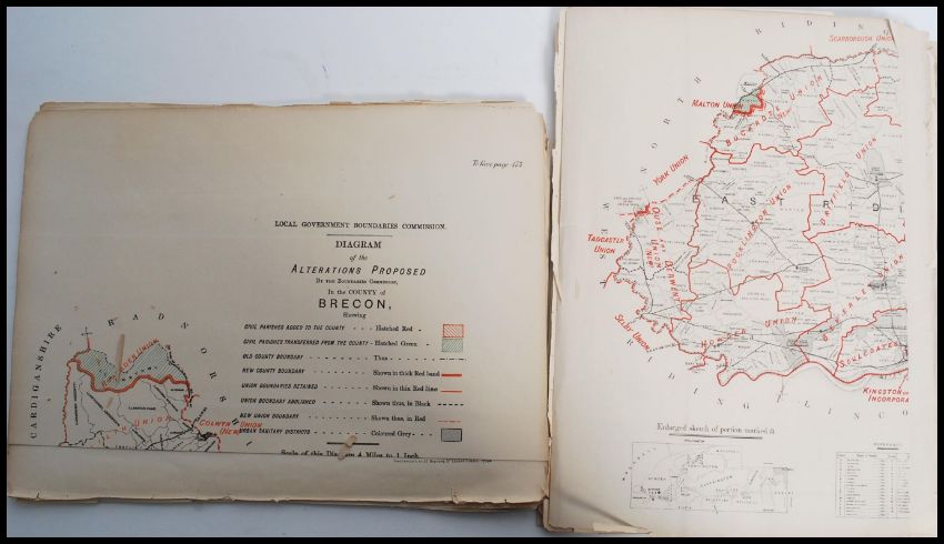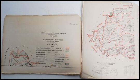 A collection of approx 50 county and town maps published by the Local Government Boundaries Commission for Parliament circa 1885 to show proposed changes relating to the reform of Parliament and its constituency boundaries. On folding paper.
