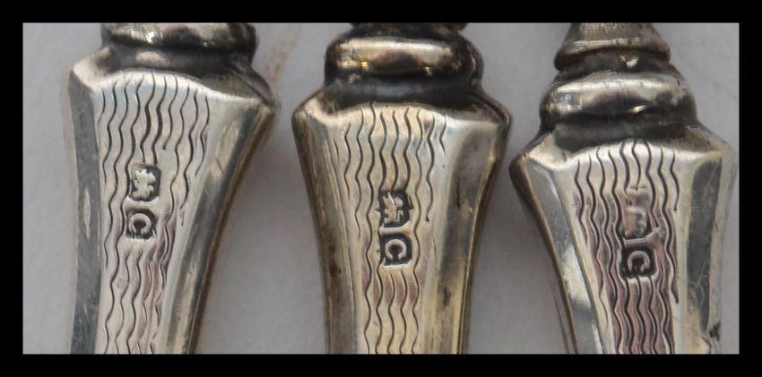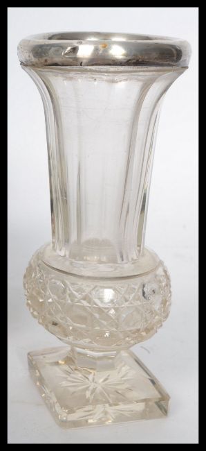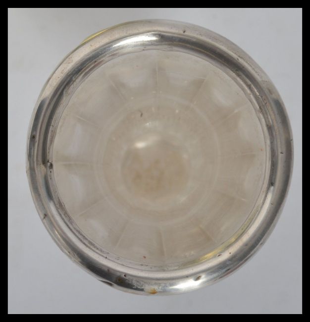 A group of silver hallmarked items to include three silver handled files / picks , a silver collared cut glass vase having a bulbous body raised on a square base and a silver hallmarked picture easel frame. Highest measures 16 cm.