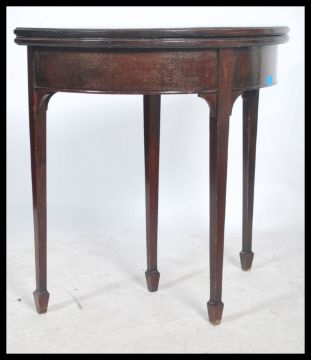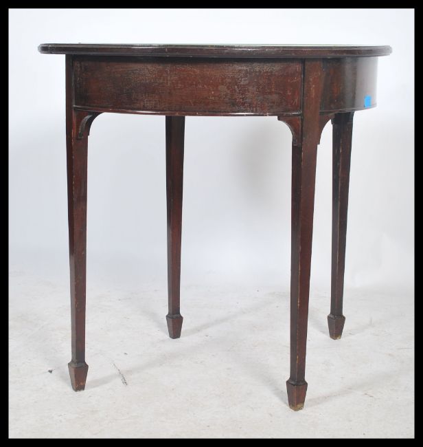An early 20th century Georgian style mahogany demi - lune side table / card table, flip over top lined with green baize, raised on cabriole legs. Measures 75cm x 77cm x 38cm.