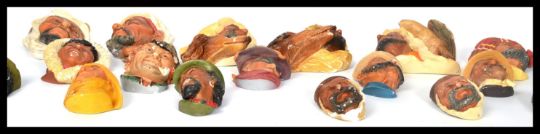 A collection of vintage Bossons heads constructed of plaster being marked to the verso for each. To include Arabian gentleman along with Irishman and many more. Highest measures 18 cm.