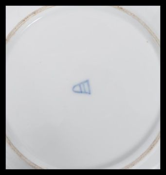 A 19th century hand painted cabinet plate having a red border with gilt decoration. The plate depicting a maiden in white dress with blue bow to hair holding a flower. Blue shield mark to base for Royal Vienna Ackermann and Fritze. The plate signed A Franz. Measures 24 cm diameter.