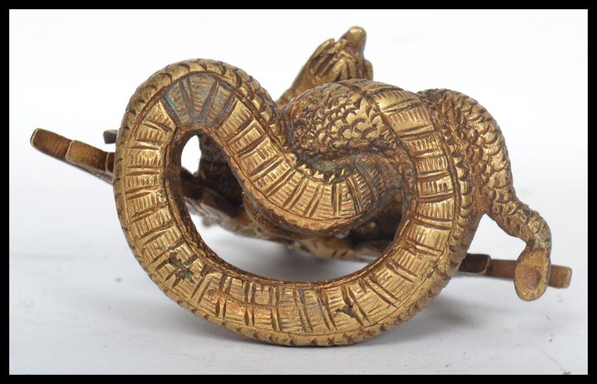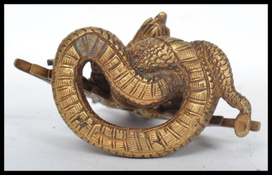 A 19th century Chinese gilt bronze Buddha having wings and snakes protruding from the back. Measures 15 cm high.