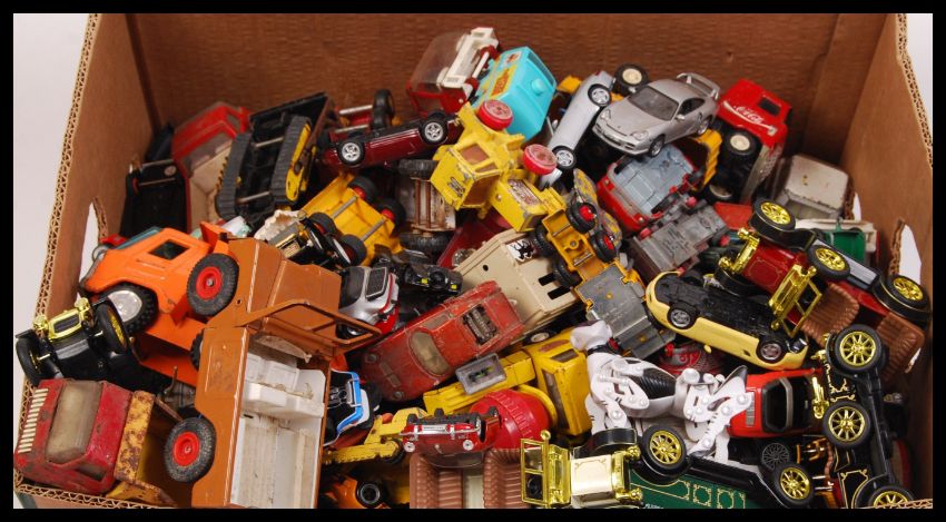 A large collection of loose assorted Matchbox, Lesney, Lledo, Models of yesteryear, Tonka & other diecast model cars comprising of; commercial vehicles, sports car, construction vehicles, vans & many others.