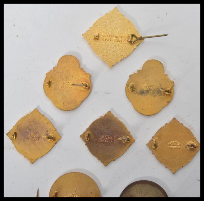 A collection of vintage 20th century enamel badges to include Masonic Bowling badges such as London Masonic Bowling Association, Cardiff Masonic Bowling Association, Wiltshire, Devonshire, Gloucestershire, Somerset, Leicestershire, New Forest, Neath, Winscombe, Bristol etc.