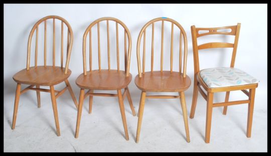A set of three 1960's ercol light elm and beech wood hoop back dining chairs together with a mid century beech dining chair.