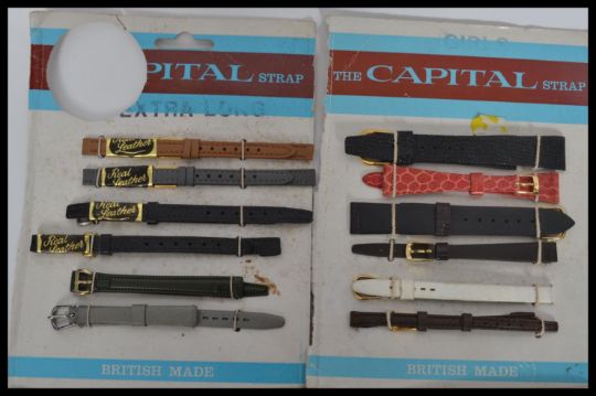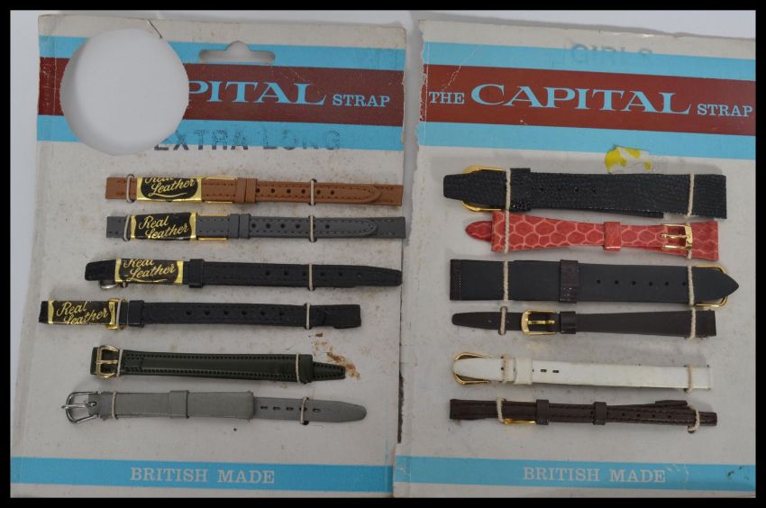 A large collection of vintage and retro Watch faces and straps to include stainless steel and leather all on original card backing.