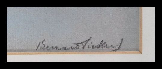 Bernard Vickery A 20th century abstract watercolour painting of a coastal harbour scene being signed in the corner by the artist. Measures 29cm x 43cm.